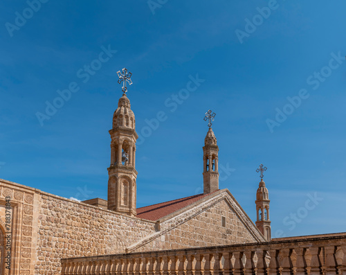 Mardin Midyat district Mor Gabriel Monastery unique architectural detail photographs taken with blue sky