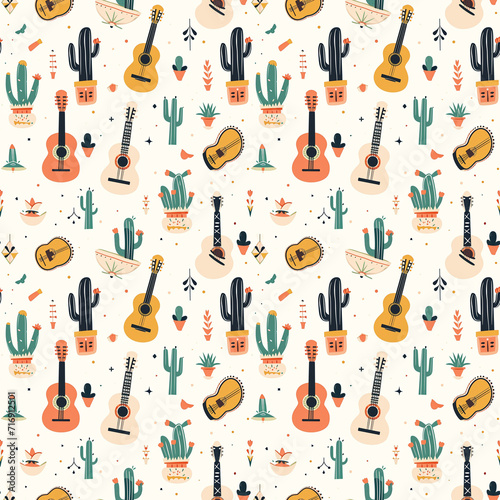 Mariachi instruments seamless pattern. Gift wrapping, wallpaper, background. National Hispanic Heritage Month