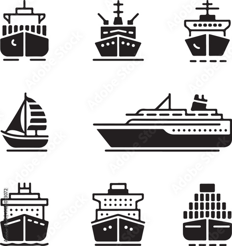 Maritime Collection: Nine varied vessel silhouettes, each a monochromatic representation of different ships, set against a seamless field. A diverse selection of craft.