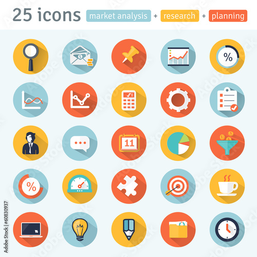 MARKET ANALYSIS. flat app icons for web & mobile. Set 1 of 8