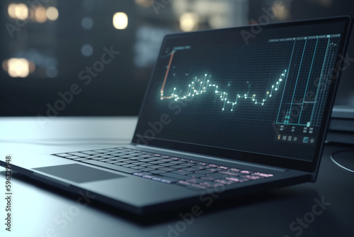 market graph laptop with Analytical Data and Big Data Technology Background, Generative AI