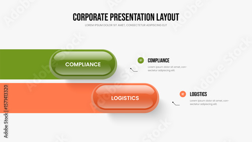 Market Portfolio 2 Option Diagram Slideshow Design. Business Overview Two Element Infographic Slide Template. Professional Showcase Frame Layout Vector Illustration.