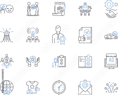 Marketing and business outline icons collection. Marketing, Business, Advertising, Promotion, Strategy, Branding, Consumer vector and illustration concept set. Digital, Social, Networking linear signs