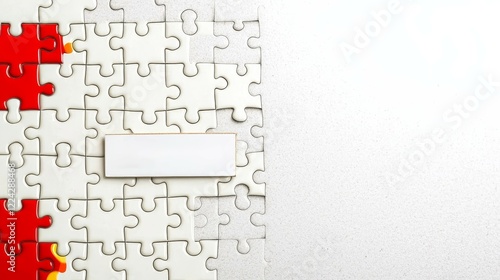 Marketing and Icon concept. Incomplete puzzle pieces with a blank space for customization on a textured background.