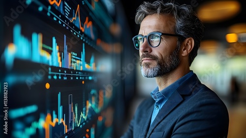Marketing professional analyzing online campaign performance metrics with innovative tools and detailed visuals