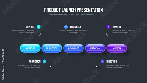 Marketing Solution Five Element Infographic Slideshow Design. Service Insight Frame Template Vector Illustration. Consulting Analysis 5 Step Diagram Slide Layout.