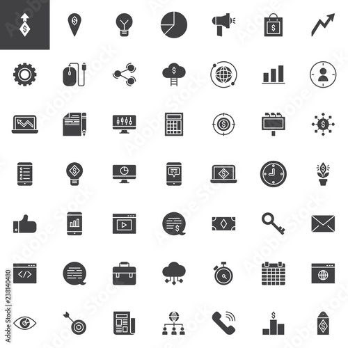 Marketing vector icons set, modern solid symbol collection, filled style pictogram pack. Signs, logo illustration. Set includes icons as Grow up business graph , Briefcase, Time management, Calendar