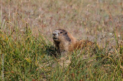 Marmot posing in the grass on sunny day