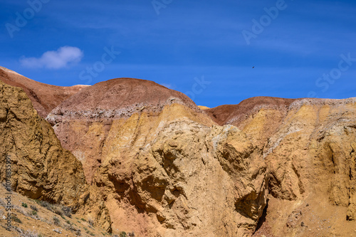 Mars. Multi-coloured rock formations. Tourist place, Mountain Altai.