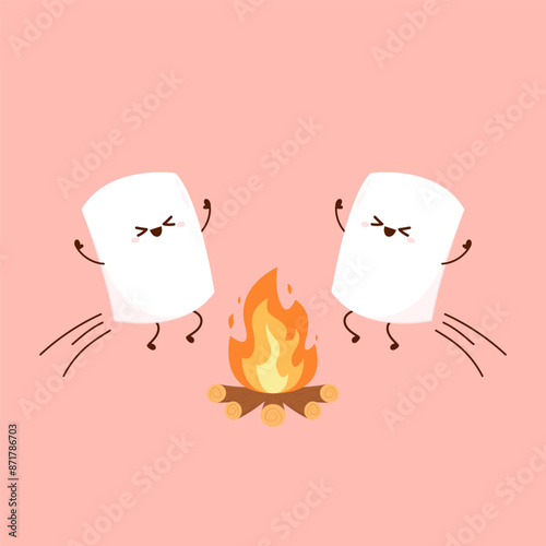 Marshmallow character. wallpaper. free space for text. logo design. bonfire vector.