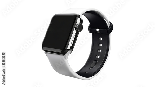mart Watch with Black Strap on White Background