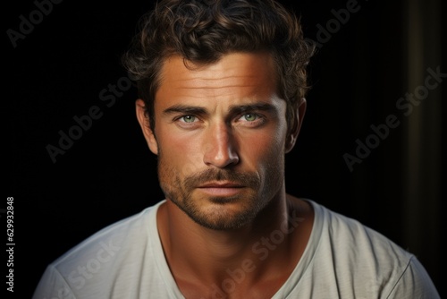 Masculinity and Grooming: A portrait of a man with a sultry, good-looking, sharp-tongued appearance.