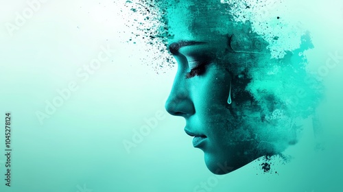 Mask of Sorrow - Watercolor Portrait of Hidden Emotions and Inner Turmoil with Tear, Copy Space for Text