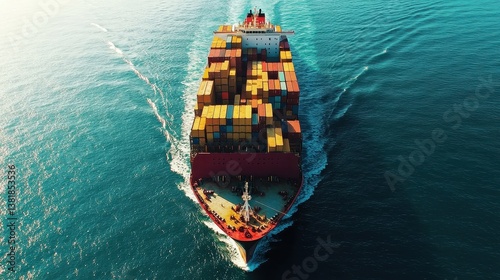 Massive container ship sailing through the ocean flat design front view maritime transport theme animation vivid.