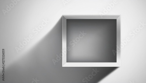 Masterful Artistic Illustration Transparent Square Shadow Box, Captivating Light and Shade Interplay on White Paper Backdrop, Showcasing Depth and Perspective