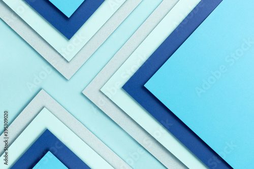 Material design blue background. Craft paper sheets are folded in different ways. A photo.