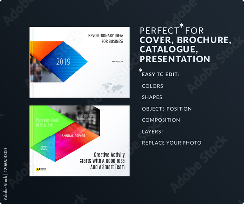 Material design style presentation template with colourful rectangles shadows. Abstract vector set of modern horizontal banners