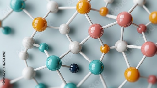 Material science ceramics concept. Colorful ceramic molecular bonds illustration, representing chemical interactions, educational science imagery