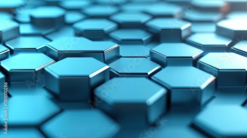 Matrix abstract background concept. Close-up view of blue hexagonal patterns showcasing advanced technology design.