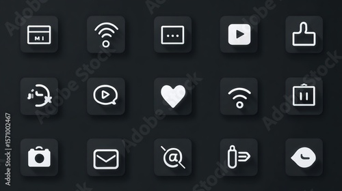 Matte Black Icons: Calendar, Wifi, Video, Heart More on Rounded Squares