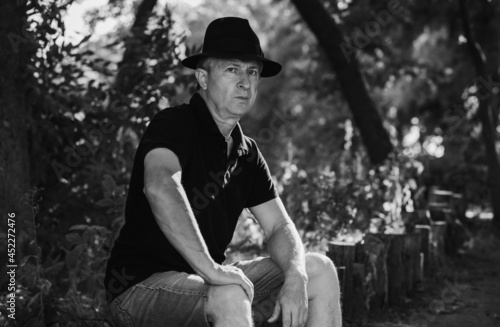 Mature European man with a sad philosophical mood. The concept of life after 50 years, problems and depression. Crisis of middle age