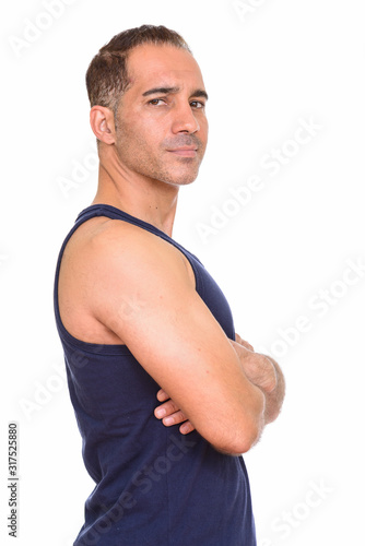 Mature handsome Persian man getting ready for gym
