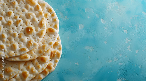 Matzah for Passover arranged on a serene blue background