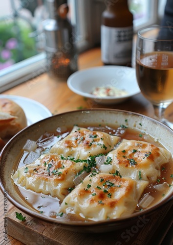Maultaschen - Swabian ravioli filled with meat, spinach, and onions, served in broth
