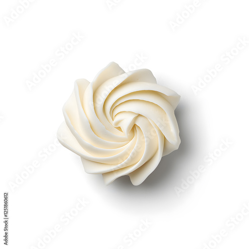 Mayonnaise swirl, whipped cream texture, top view, isolated on white background closeup