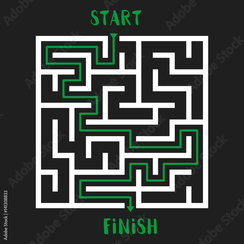 Maze Game with solution. Labyrinth with Entry and Exit. Vector Illustration.