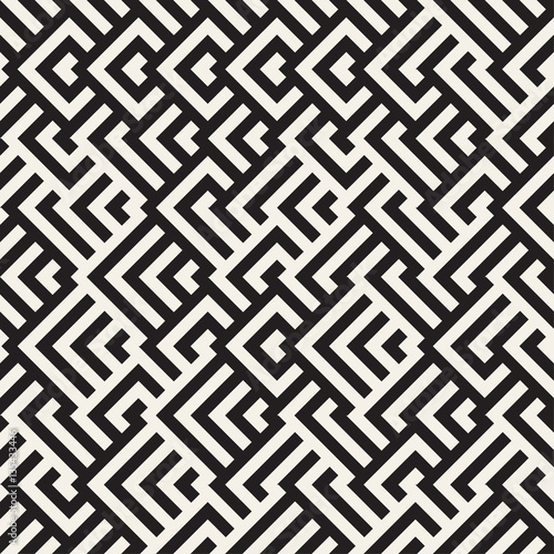 Maze Tangled Lines Contemporary Graphic. Vector Seamless Black and White Pattern.