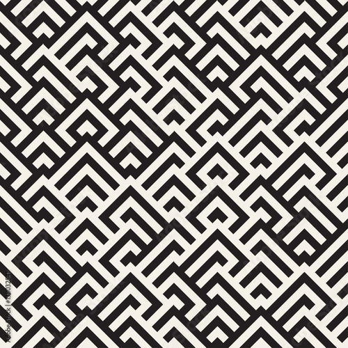 Maze Tangled Lines Contemporary Graphic. Vector Seamless Black and White Pattern.