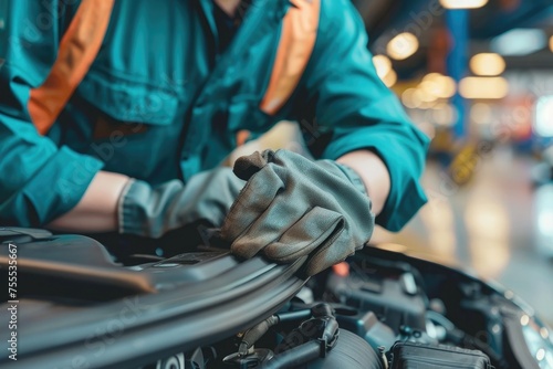 mechanic hands using a wrench to service a car engine, focused on maintenance work in a garage