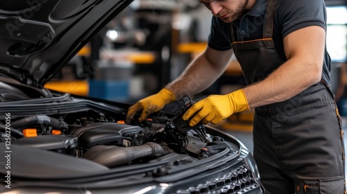 Mechanic Working on Engine Components with Focus on Auto Repair