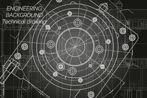 Mechanical engineering drawings on black background. Milling machine spindle. Technical Design. Cover. Blueprint.