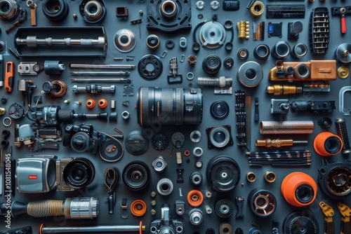 Mechanical Parts in an Industrial Design with Metal and Golden Components