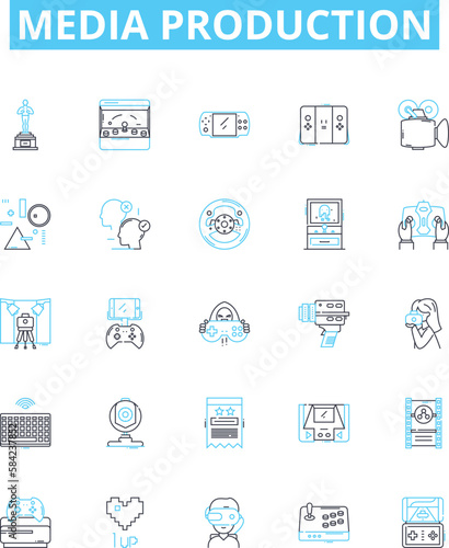 Media production vector line icons set. Filming, Animation, Editing, Post-Production, Photoshoots, Direction, Casting illustration outline concept symbols and signs
