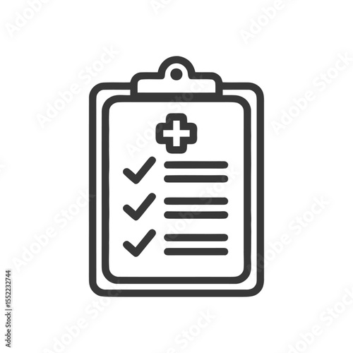 Medical Checklist Icon: Clipboard with Cross and Checkmarks, Isolated