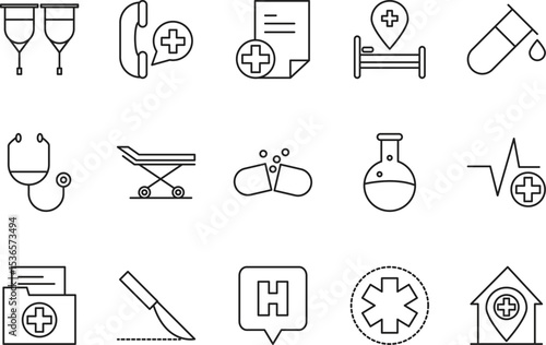 Medical Icons 16 Line Art Vector Graphics for Healthcare Websites and Apps