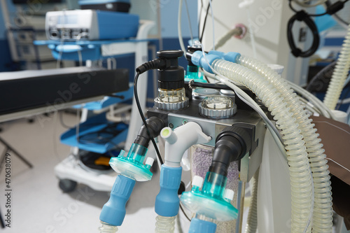 Medical Oxygen Concentrator is ready to use front of the emergency room at the hospital. Medical Device Individual portable oxygen cylinder to put gas for patients with respiratory disorders