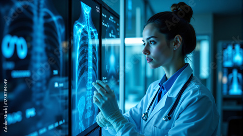 Medical Professional Analyzing X-Ray Images
