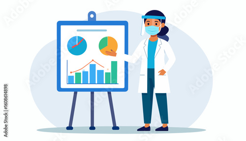 Medical professional presenting data analysis and business insights during a pandemic