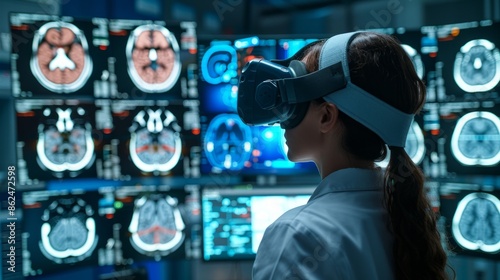 Medical Professional Using Virtual Reality for Brain Scan Analysis in High-Tech Laboratory