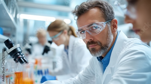 Medical researchers collaborate on breakthroughs in a modern laboratory