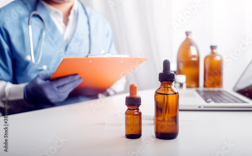 Medical technology concept The doctor works with mobile phones, headphones and tablets. Digital laptop in the modern office at the hospital in the morning