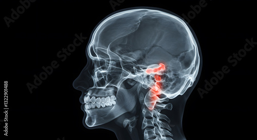 Medical X-ray Image of Human Skull and Cervical Spine Showing Upper Cervical Spine