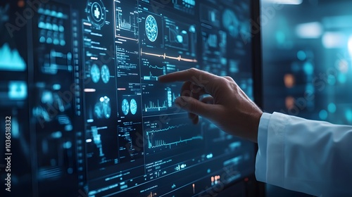 Medicine doctor hand working with modern computer interface .