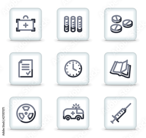 Medicine icons set 1, white square glossy buttons