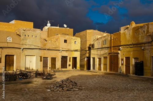 Medieval market square in the small village of Beni Isguen in the Unesco World Heritage Site M'zab, Algeria, Africa