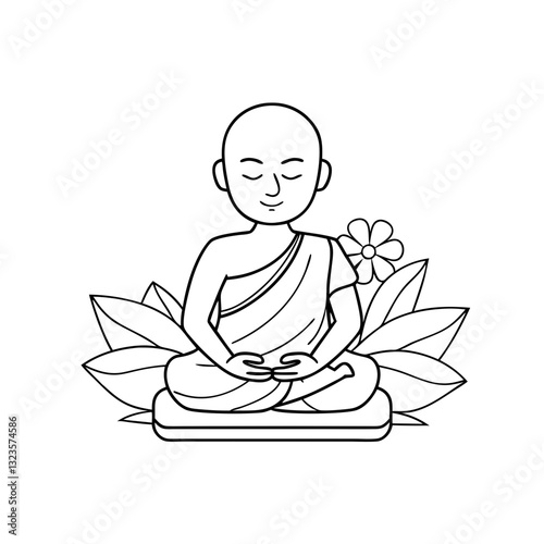 Meditating Monk Vector Illustration for Mindfulness and Meditation Themes
